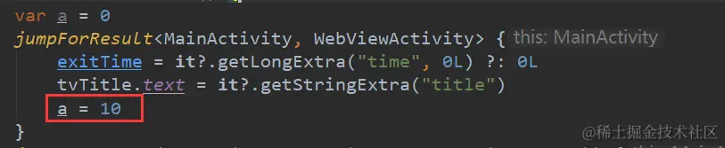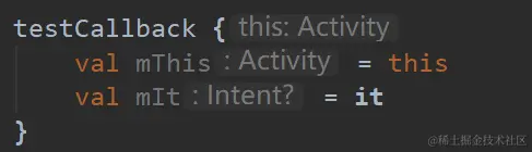 之前的回调类型是 (Intent?) -> Unit 编译成字节码后其实就是一个 Function1<Intent?,Unit>类型的匿名内部类,而jvm中匿名内部类的特性之一是会在构造中传入上层类的对象,所以说该回调中可以操作当前Activity中的变量(因为持有了它)