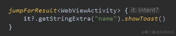 而我们要处理上述问题,就不能使用匿名内部类构造中的Activity对象(因为重建并恢复后就不是同一个对象了),正好kotlin中有很好的方法来处理这个问题,我们可以使用这个类型的回调 Activity.(Intent?) -> Unit ,相当于以Activity为Receiver的 (Intent?) -> Unit ,这种Receiver特性在kotlin基础库中被广泛应用,比如T.apply: