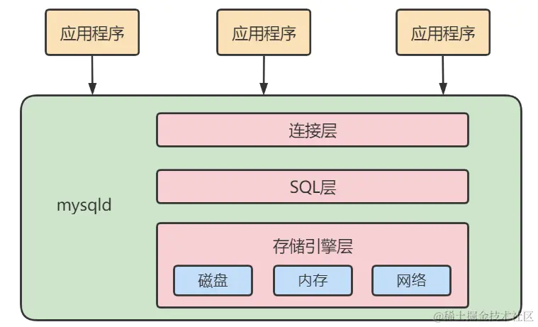 接下来的MySQL Server结构可以分为如下的三层: