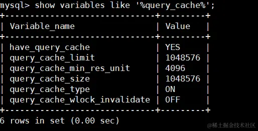 mysql> show global variables like "%query_cache_type%";