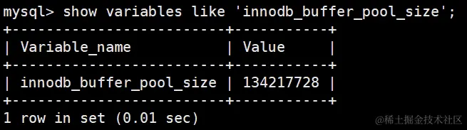 show variables like 'innodb_buffer_pool_size';