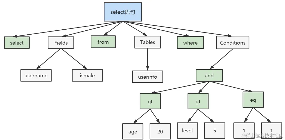 MySQL 从你输入的"select"这个关键字识别出来,这是一个查询语句。它也要把字符串“T”识别成“表名 T”,把字符串“ID”识别成“列 ID”。