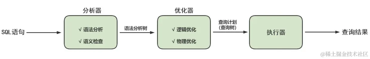 SQL 语句在语法解析之后、查询之前会使用查询优化器确定 SQL 语句的执行路径,生成一个 执行计划 。