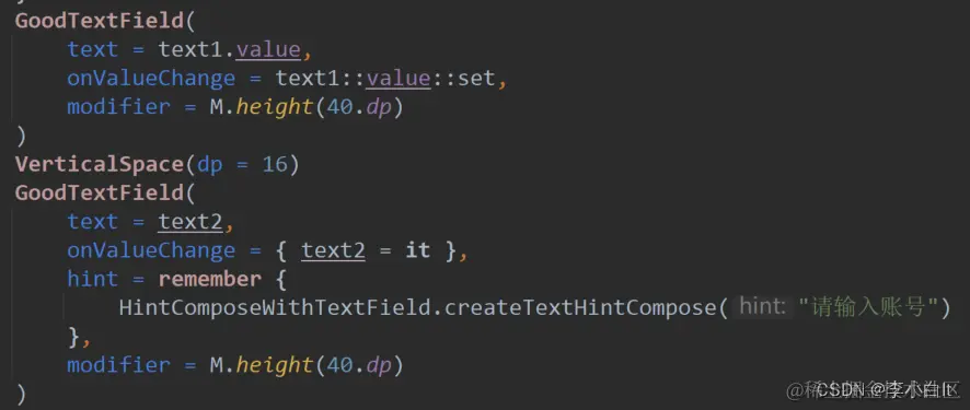 hint属性就类似于EditText的hint属性,但是其更灵活,可以使用任何Compose组件