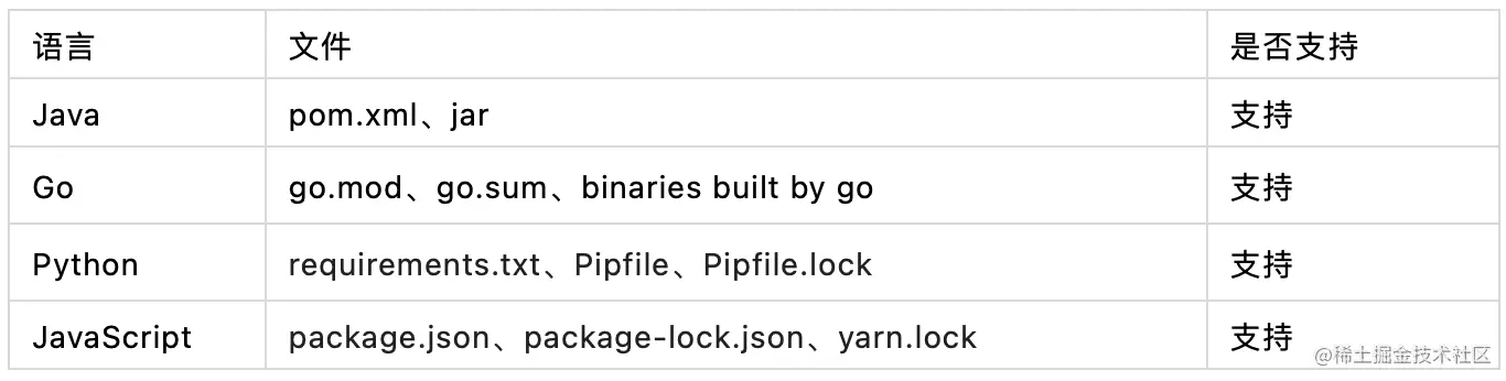 目前得物内部主要有Java、Go、Python、JavaScript等语言,目前对以上四种语言已经做到全部支持(包括Java打包后的Jar文件、Go静态语言编译后的二进制文件)。