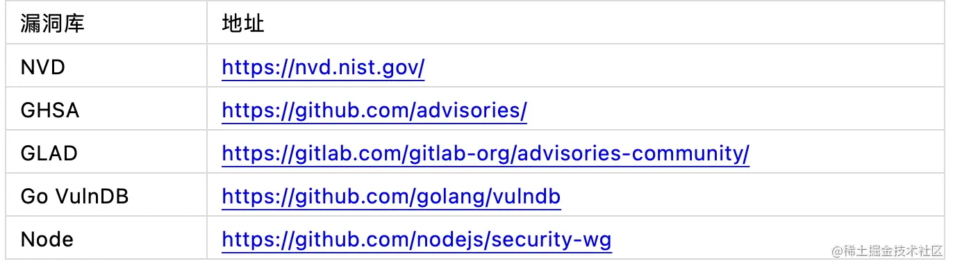漏洞库的建设非一朝一夕能完成的,目前漏洞库的建设主要以开源为主,如NVD、GHSA、GLAD、Go VulnDB等,辅以内部人工收集到的一些漏洞信息。这里提一下,NVD官方的漏洞库虽然很全,但里面定义的cpe信息与组件信息不是完全一致,而且许多CVE数据无影响版本、修复版本等数据,这些信息需要结合其他漏洞情报综合判定。