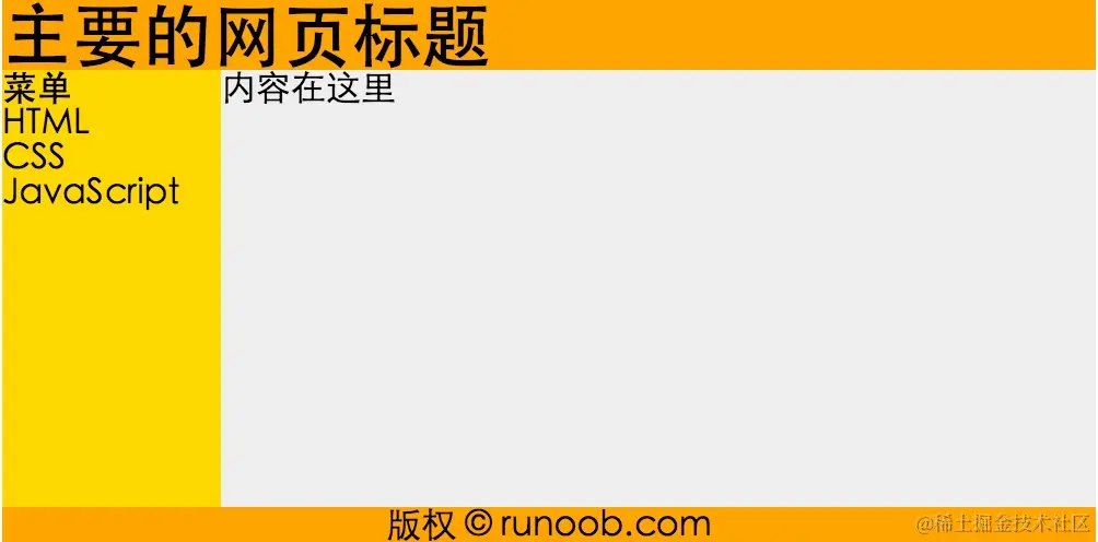 | 菜单 HTML CSS JavaScript | 内容在这里 |