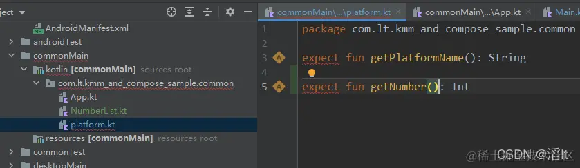 首先我们在commonMain的platform.kt文件中定义一下expect fun: