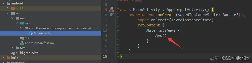 我们把android文件夹中的MainActivity给App()代码注掉,然后使用我们刚写的compose代码
