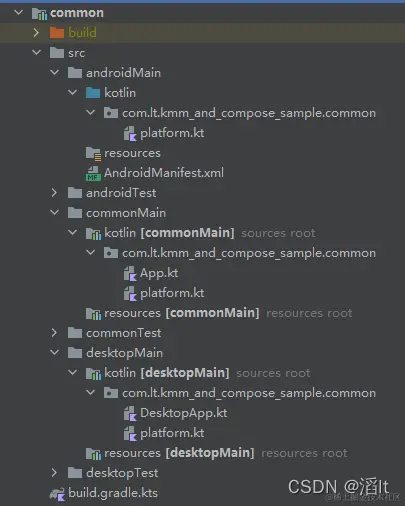 common目录是kmm的核心目录,可以看到其中有androidMain,commonMain,desktopMain等目录