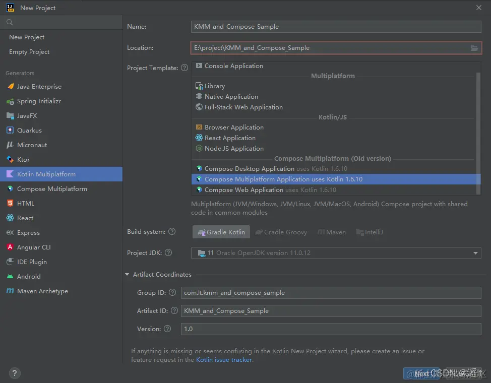 首先我们使用idea来创建一个KMM+Compose的原始框架项目