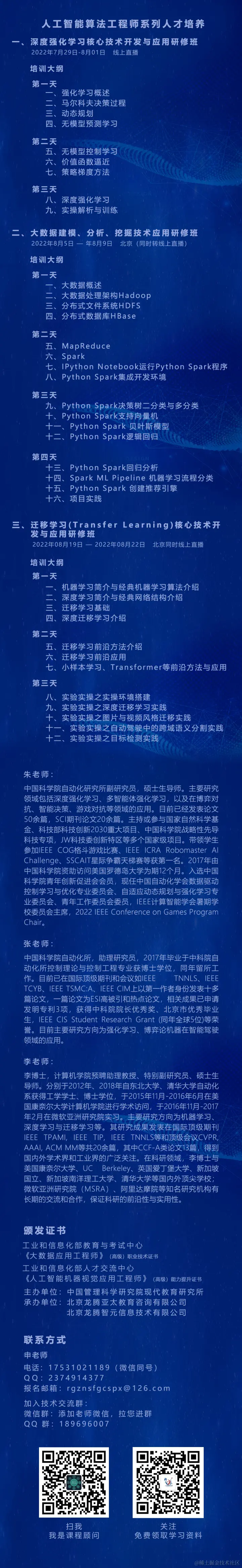 来自中国科学院计算技术研究所、清华大学、北京理工大学等科研机构和大学的高级专家,拥有丰富的科研及工程技术经验,长期从事深度学习、迁移学习、计算机视觉等领域的教学与研究工作。