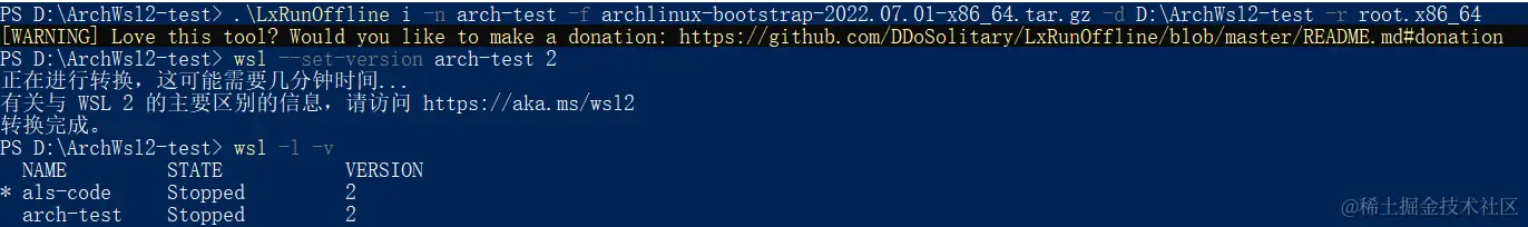 wsl --set-version arch-test 2 -