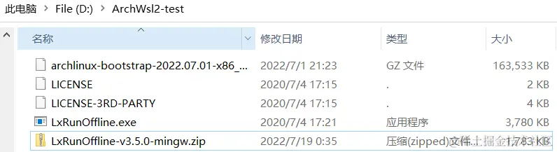 .\LxRunOffline i -n arch-test -f archlinux-bootstrap-2022.07.01-x86_64.tar.gz -d D:\ArchWsl2-test -r root.x86_64