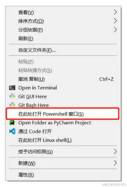 在安装目录(shift + mouseRight)打开Powershell