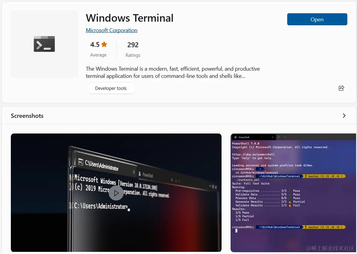 终端推荐使用Windows Terminal Microsoft Store里下载
