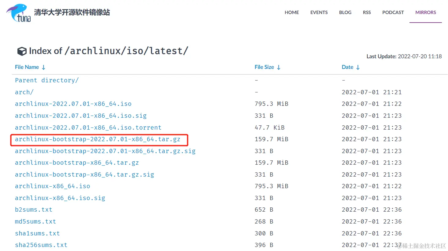 下载archlinux-bootstrap-xxxx.xx.xx-x86_64.tar.gz, 注意是tar.gz文件