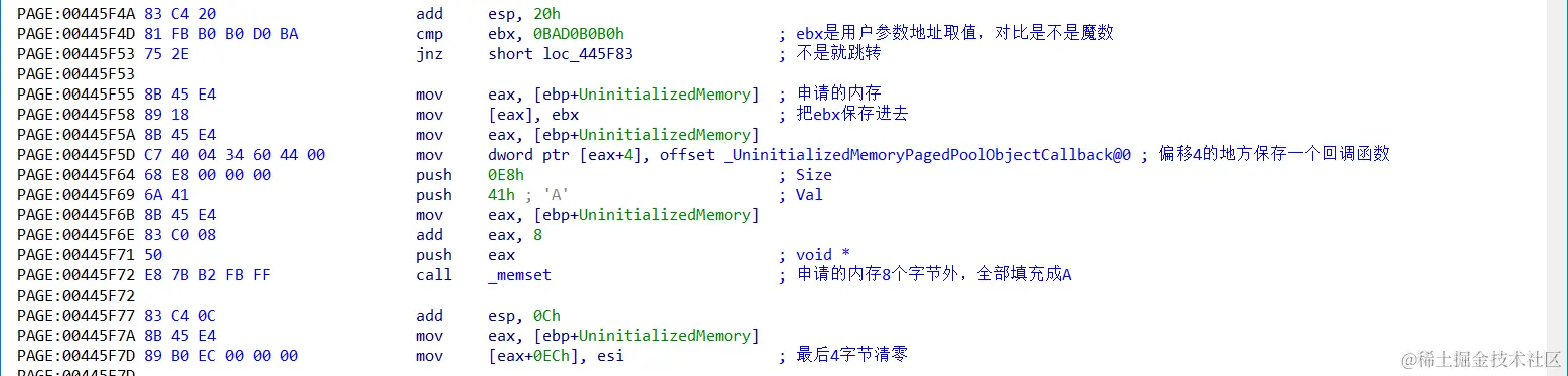 老样子,先IDA找到该漏洞的触发函数TriggerUninitializedMemoryPagedPool,分析函数是如何存在漏洞的: