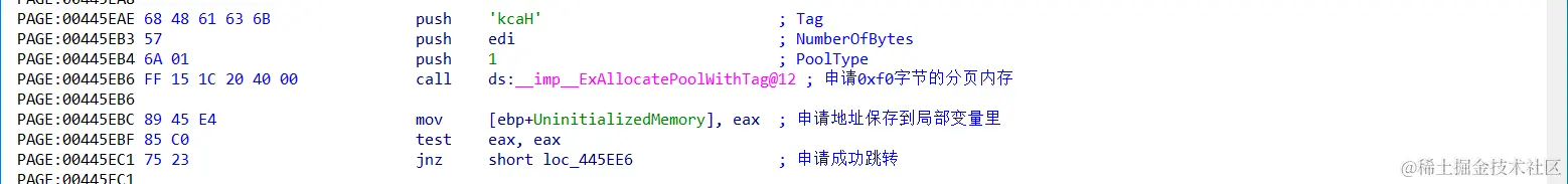 DbgPrint("[+] Triggering Uninitialized Memory in PagedPool\n");