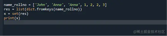 要检查输出结果,请保存并运行程序文件 "ListintoSet",并检查dict.fromkeys()函数如何工作。