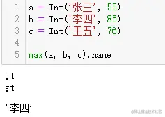 看了后好像也不能理解具体用的啥,本人愚钝,没有去看c源码,尝试直接将几个类实例传入到max中,可以看到打印出多个gt,可以大概猜测实现逻辑,通过遍历传入的值,逐个比较,如max是多次使用>,调用__gt__魔法方法。