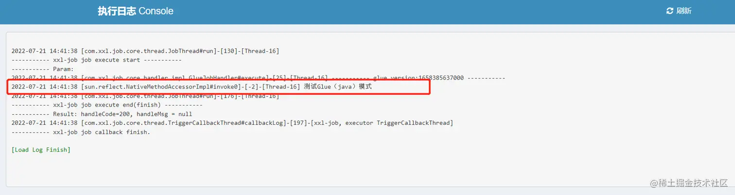 3、执行日志:需要通过 "XxlJobHelper.log" 打印执行日志;