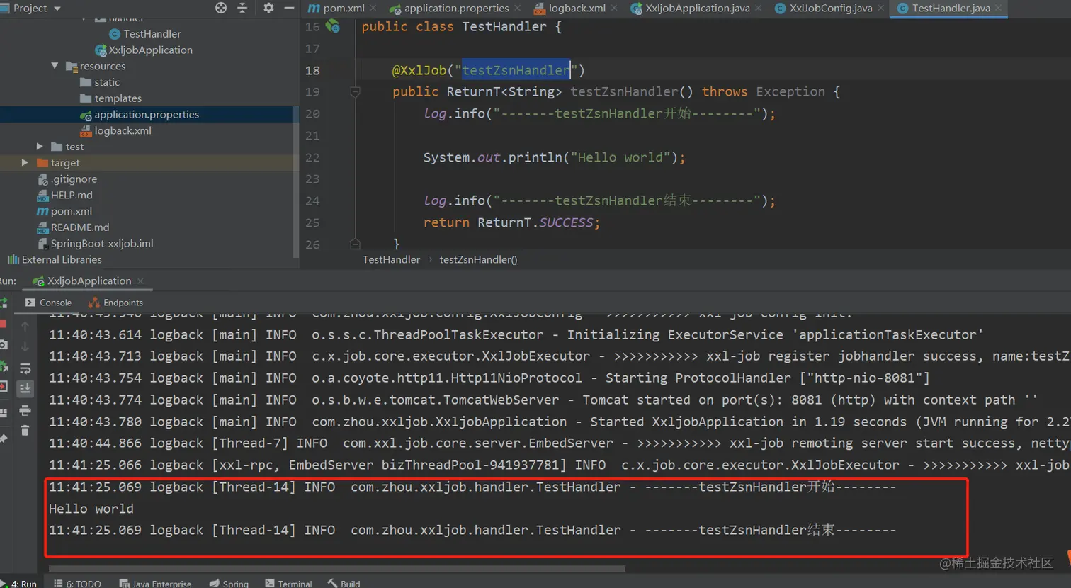 XxlJobHelper.log("XXL-JOB, Hello World.");