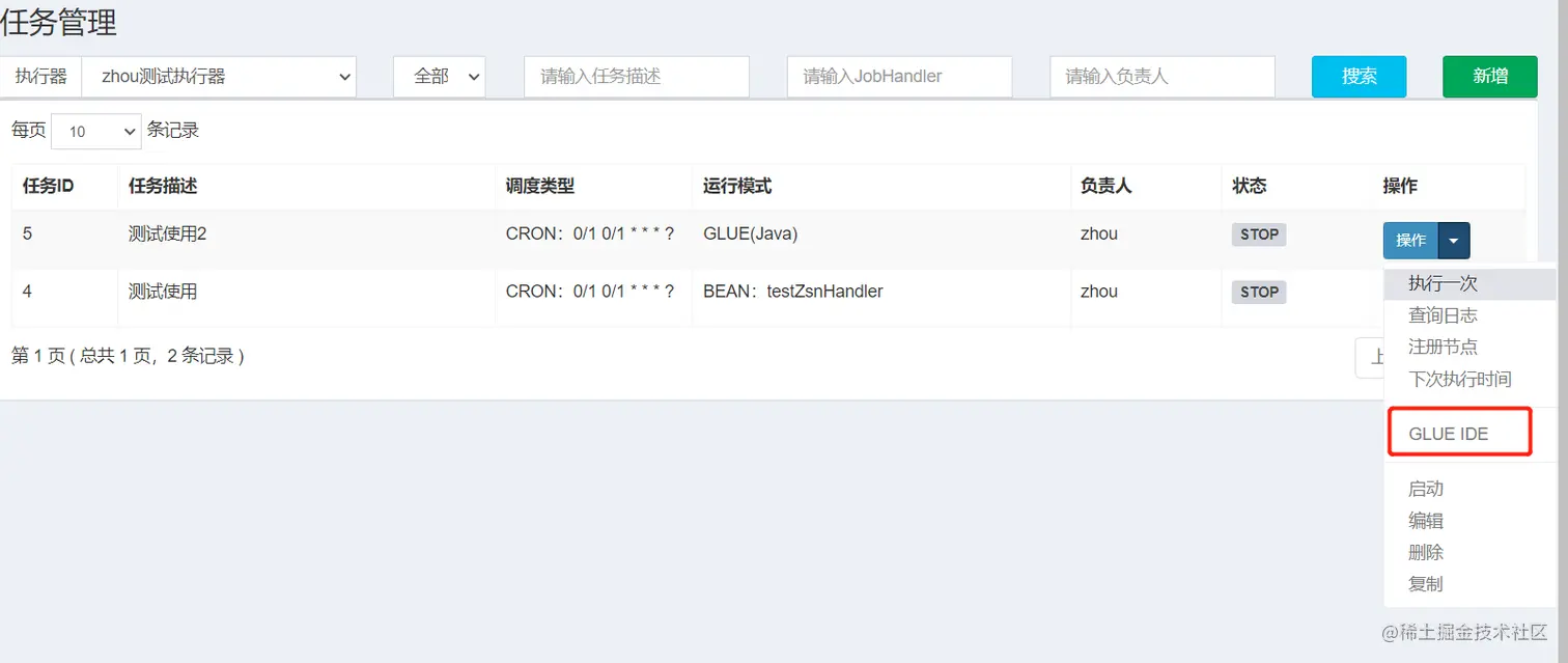 GLUE模式(NodeJS):任务以源码方式维护在调度中心;该模式的任务实际上是一段 "nodejs" 脚本;