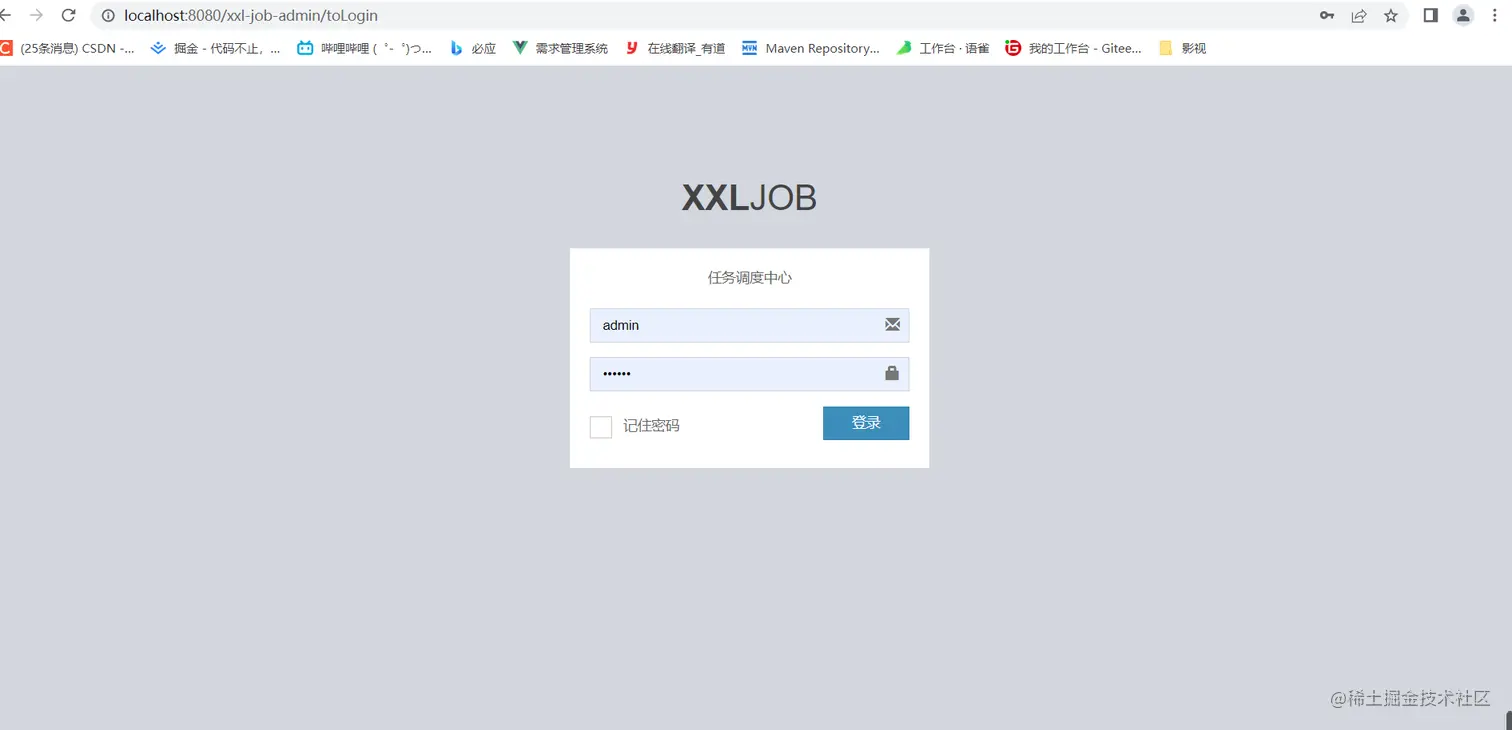 调度中心访问地址:http://127.0.0.1:8080/xxl-job-admin (该地址执行器将会使用到,作为回调地址)