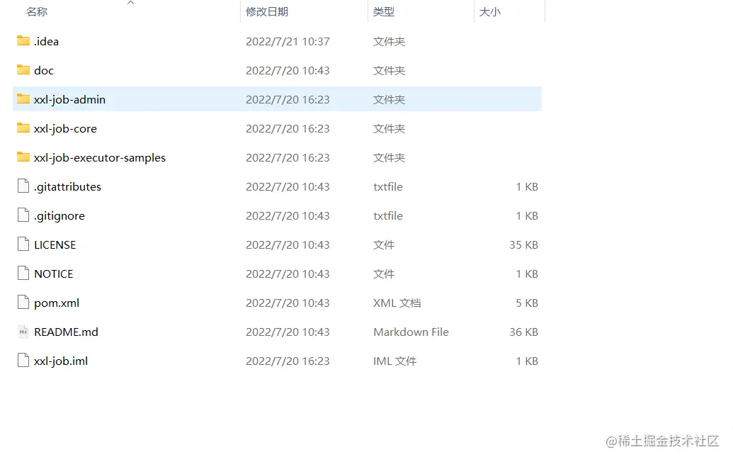 码云地址:gitee.com/xuxueli0323… 直接下载压缩包,或者使用git拉取代码。解压源码,按照maven格式将源码导入IDE, 使用maven进行编译即可,源码结构如下: