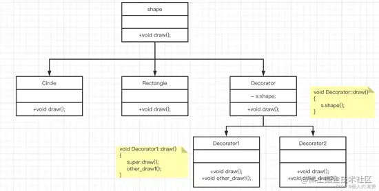 装饰器模式,主要就是希望在不改变现有接口的功能情况下,扩展出一些新的功能。比如说,我们设计一个绘图软件,之前可能只是绘制正方形、圆形接口。但是客户觉得太单调了,有要求,绘制有颜色的图形,比如说绿色的正方形、红色的圆形等等。因此,就应运而生了装饰器模式,