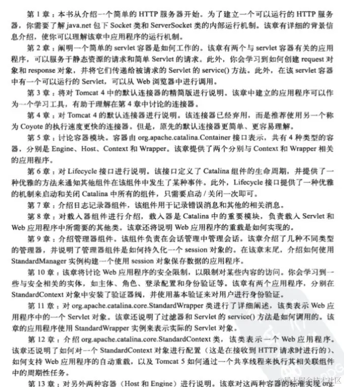 - 第15章:说明如何通过Digester组件来对Web应用程序进行配置,Digester是Apacbe软件基金会的一个开源项目,即使你对这个不熟悉也没关系,该章会简要介绍Digester库,说明如何使用该库来搞XML。