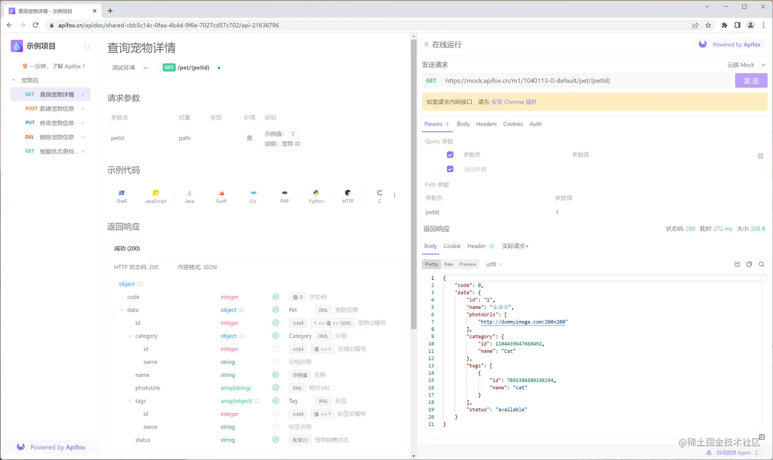 分享出去的接口文档页面支持简单的基础调试功能,如果你如要更加强大的调试辅助,则可以使用Apifox客户端。