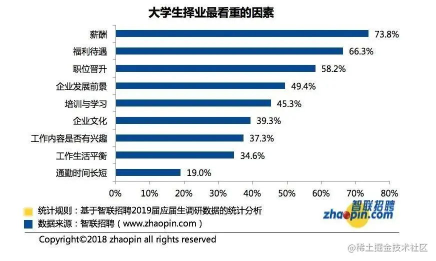 第一次择业时,真正应该看重的还应该是公司前景和个人成长。