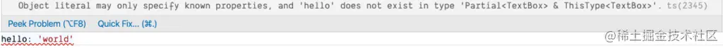 TextBox({ ... })应该接受什么,如果你试图输入一个没有在类型中定义的属性,你会得到一个编译时错误。