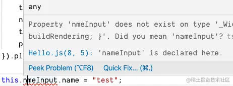 this.nmeInput,我们就会立即得到一个错误。