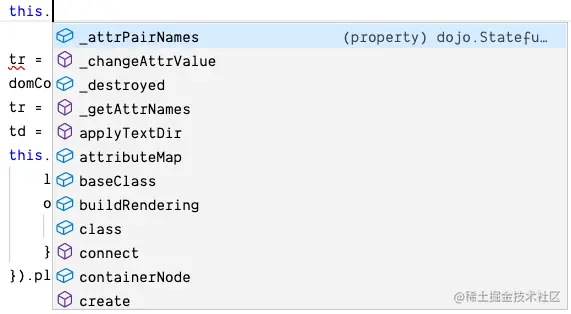 domConstruct或this.将为你提供一个特定于该类型的自动完成列表。