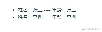 姓名:{{ item.name }} ---- 年龄:{{ item.name }}