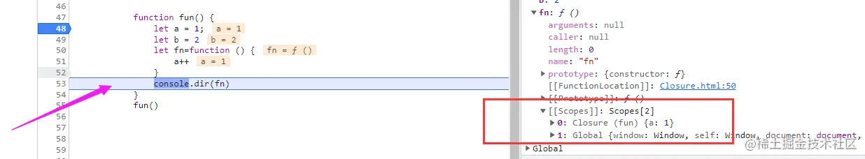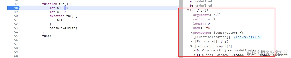 在函数fn的作用域上出现了Closure对象,这就说明函数fn是一个闭包函数。