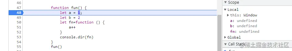 还是上面的代码,我们可以在浏览器后台通过断点来看