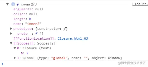 通过打印我们发现函数inner2并没用引用外部函数的变量 可也是一个闭包。