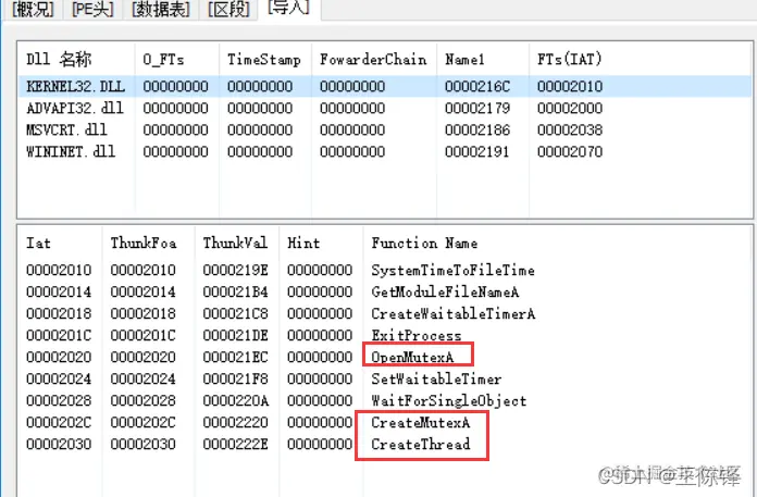 有对互斥体进行操作的函数OpenMutexA、CreateMutexA函数;