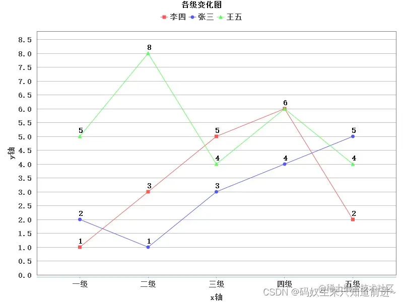 byte[] byteArray = GenerateChartUtil.createLineChart("各级变化图", legendNameList, xAxisNameList