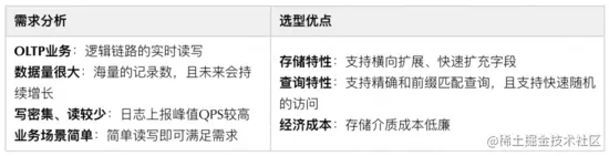 日志存储 :完成日志解析后,日志会按照树状的存储模型进行落地存储,结合存储的需求分析以及各个存储选项的特点,点评内容平台最终选择 HBase 作为存储选型。