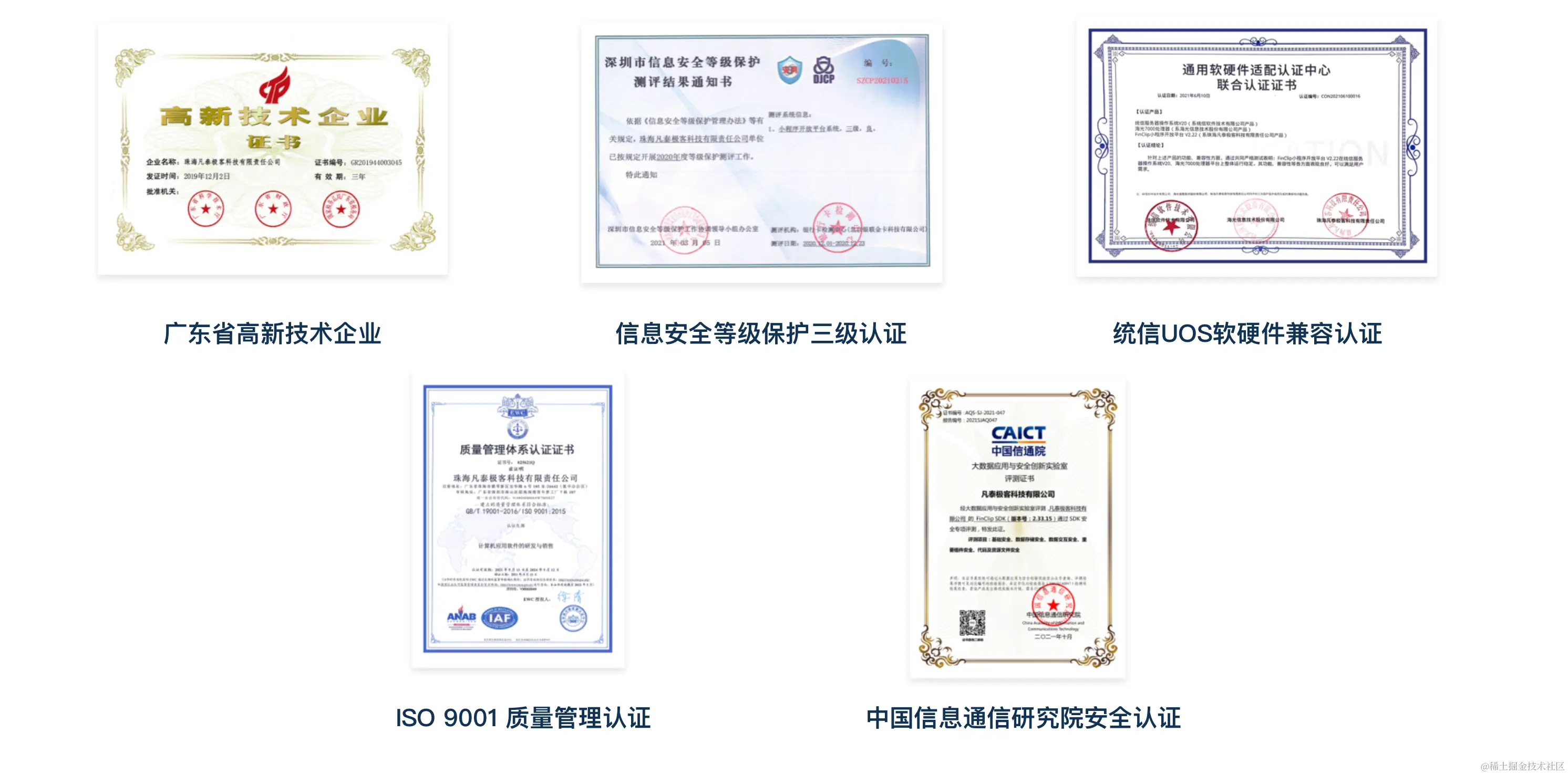 其次,FinClip 在安全逆向技术与安全防护技术方面都非常成熟。包括:非授权外部接入风险防范,FinClip SDK具备相应的保护机制,确保网络通信安全可靠;数据安全风险防范,避免用户敏感信息及业务相关数据泄漏;FinClip采取的加壳保护、代码混淆、反调试等安全加固措施,提高相关文件、业务通讯及加密协议被黑客或第三方平台攻击破解的难度。FinClip也获得多项安全认证,多重保障用户信息安全。