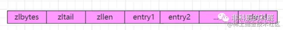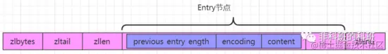 zlbytes:4个字节的大小,记录压缩列表占用内存的字节数。zltail:4个字节大小,记录表尾节点距离起始地址的偏移量,用于快速定位到尾节点的地址。zllen:2个字节的大小,记录压缩列表中的节点数。entry:表示列表中的每一个节点。zlend:表示压缩列表的特殊结束符号'0xFF'。