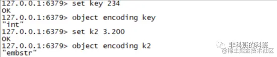 举一个简单的例子,你在Redis中设置一个字符串 key 234 ,然后查看这个字符串的存储类型就会看到为int类型,非整数型的使用的是embstr储存类型,具体操作如下图所示: