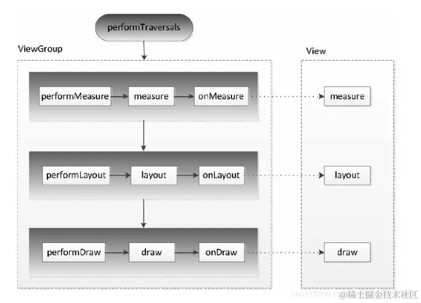 performTraversals 负责触发 measure, layout, draw