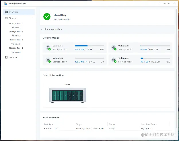 - 显示存储池、卷和SSD缓存之间的可视化关系。