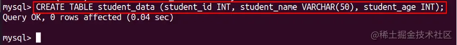 CREATE TABLE student_data (student_id INT, student_name VARCHAR(50), student_age INT);